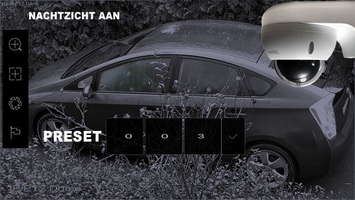 Verder moet de bewakingscamera goed nachtzicht hebben. De Dahua PTZ is uitermate geschikt hiervoor. De camera ziet vooral snachts erg goed en u kunt dmv presets de camera op uw auto richten! Let wel uw auto moet in de buurt geparkeerd staan.