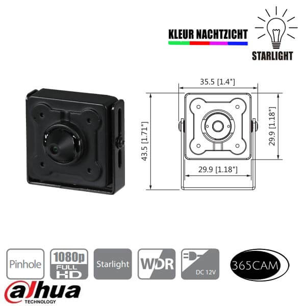 Deze kleine HDCVI camera kunt u toepassen om onopvallend te bewaken. Vanwege zijn kleine lensopening van slechts 2mm kunt u deze camera ergens wegbouwen zodat u een verborgen camera kunt realiseren.